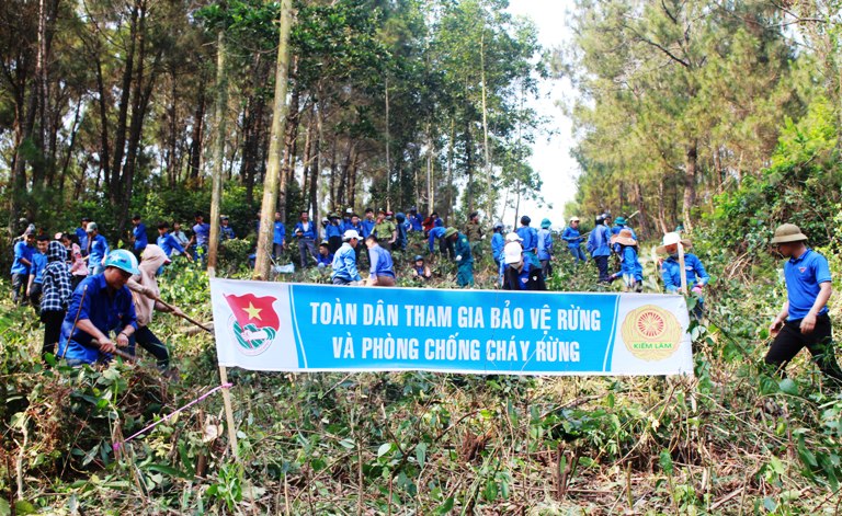 Sau lễ phát động, hàng trăm đoàn viên, thanh niên đã thực hiện phát quang hơn 2km đường băng cản lửa và thu gom thực bì, vật liệu dễ cháy ra khỏi khu vực rừng thông ở xã Quỳnh Mỹ, huyện Quỳnh Lưu.