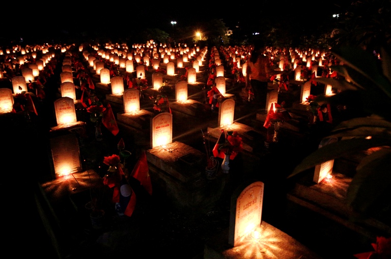 Hàng ngọn nền tri ân thắp sáng nghĩa trang liệt sỹ Việt – Lào huyện Anh Sơn