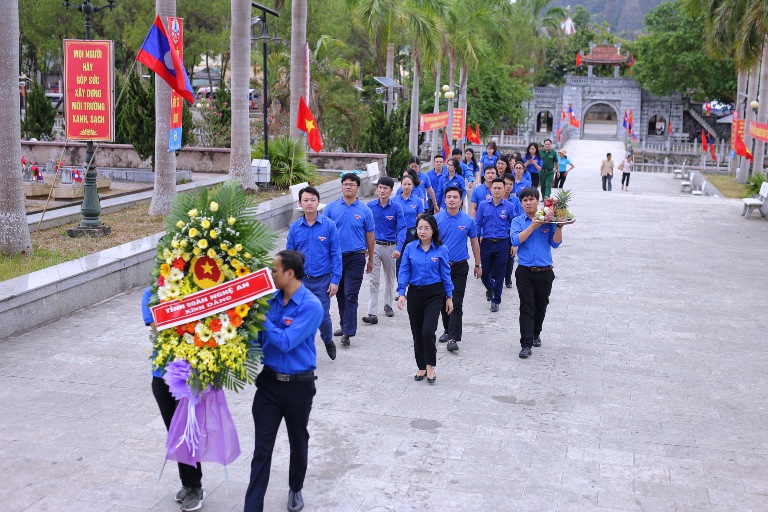 Cán bộ, đoàn viên Tỉnh đoàn Nghệ An đến dâng hương, dâng hoa tại Nghĩa trang liệt sỹ quốc tế Việt - Lào