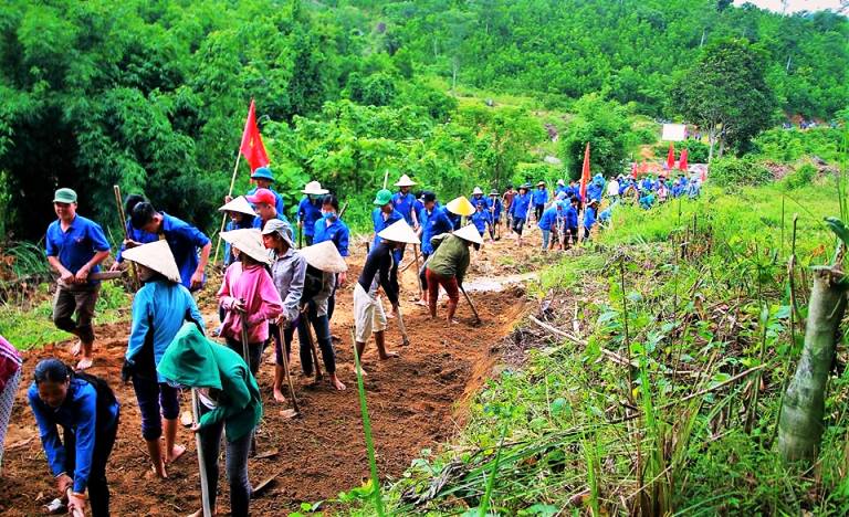 Thanh niên làm đường tại xã Lục Dạ, Con Cuông
