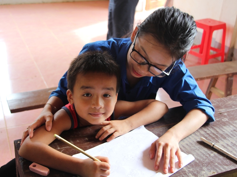 Thanh niên tình nguyện dạy chữ cho trẻ em vùng cao