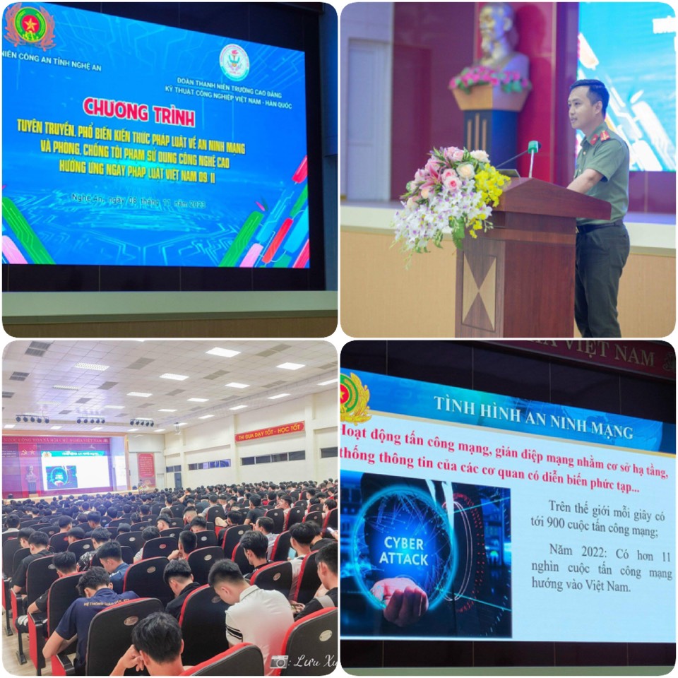 Đoàn Thanh niên Công an Tỉnh phối hợp với Đoàn trường CĐ KTCN Việt Nam – Hàn Quốc tổ chức buổi tuyên truyền tư vấn pháp luật cho hơn 450 sinh viên nội trú