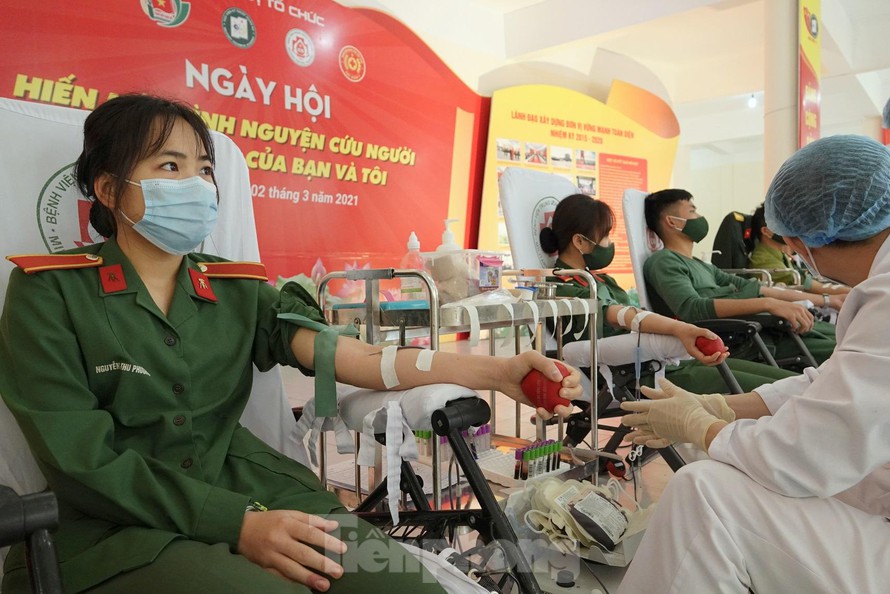 ĐVTN Quân đội hiến máu cứu người trong Tháng Thanh niên 2021. Ảnh: Nguyễn Minh