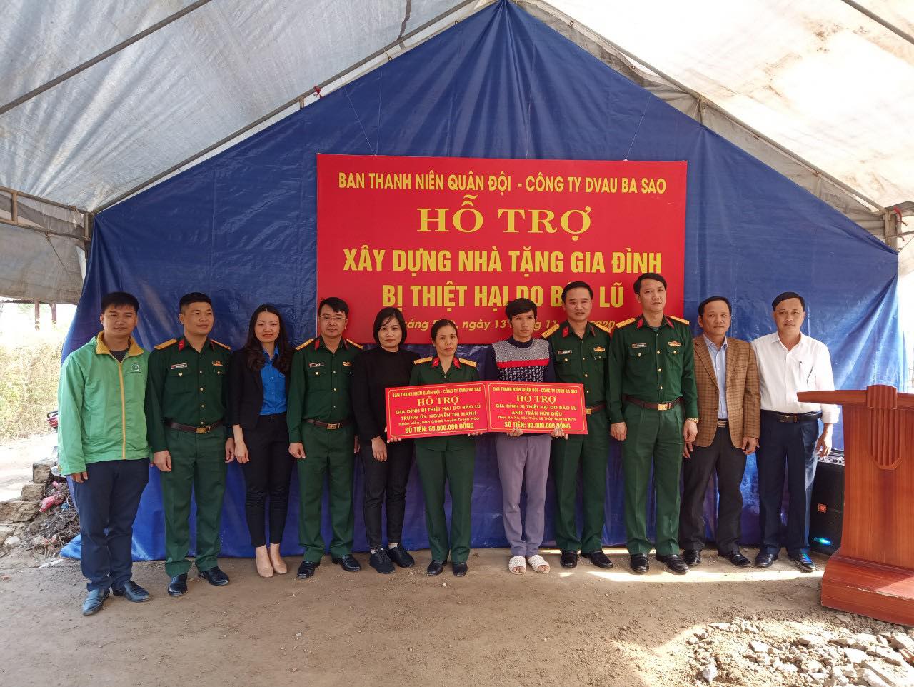 Trước đó, Công ty TNHH dịch vụ ăn uống Ba Sao đã chuyển số tiền 35 triệu đồng về Quân khu 4 để tặng gia đình của các cán bộ, chiến sỹ đã anh dũng hy sinh trong khi làm nhiệm vụ cứu hộ, cứu nạn tại Rào Trăng và Đoàn kinh tế Quốc phòng 337, Quân khu 4.