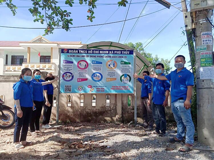 ĐVTN cắm biển tuyên truyền phòng chống Covid - 19