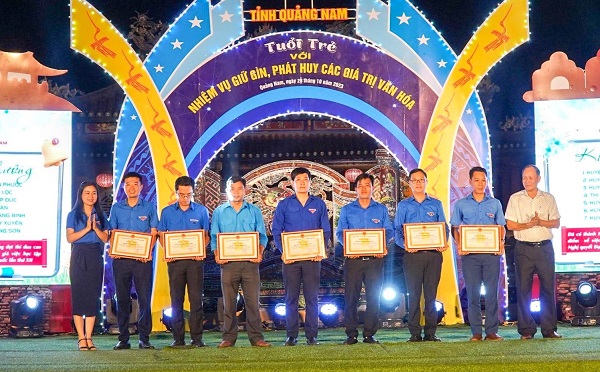 Dịp này, Ban Thường vụ Tỉnh đoàn tuyên dương, khen thưởng 6 tập thể có thành tích xuất sắc trong công tác giữ gìn và phát huy các giá trị văn hóa; khen thưởng 7 tập thể có thành tích xuất sắc trong đợt cao điểm triển khai Nghị quyết Đại hội Đoàn toàn quốc lần thứ XII (nhiệm kỳ 2022 - 2027).