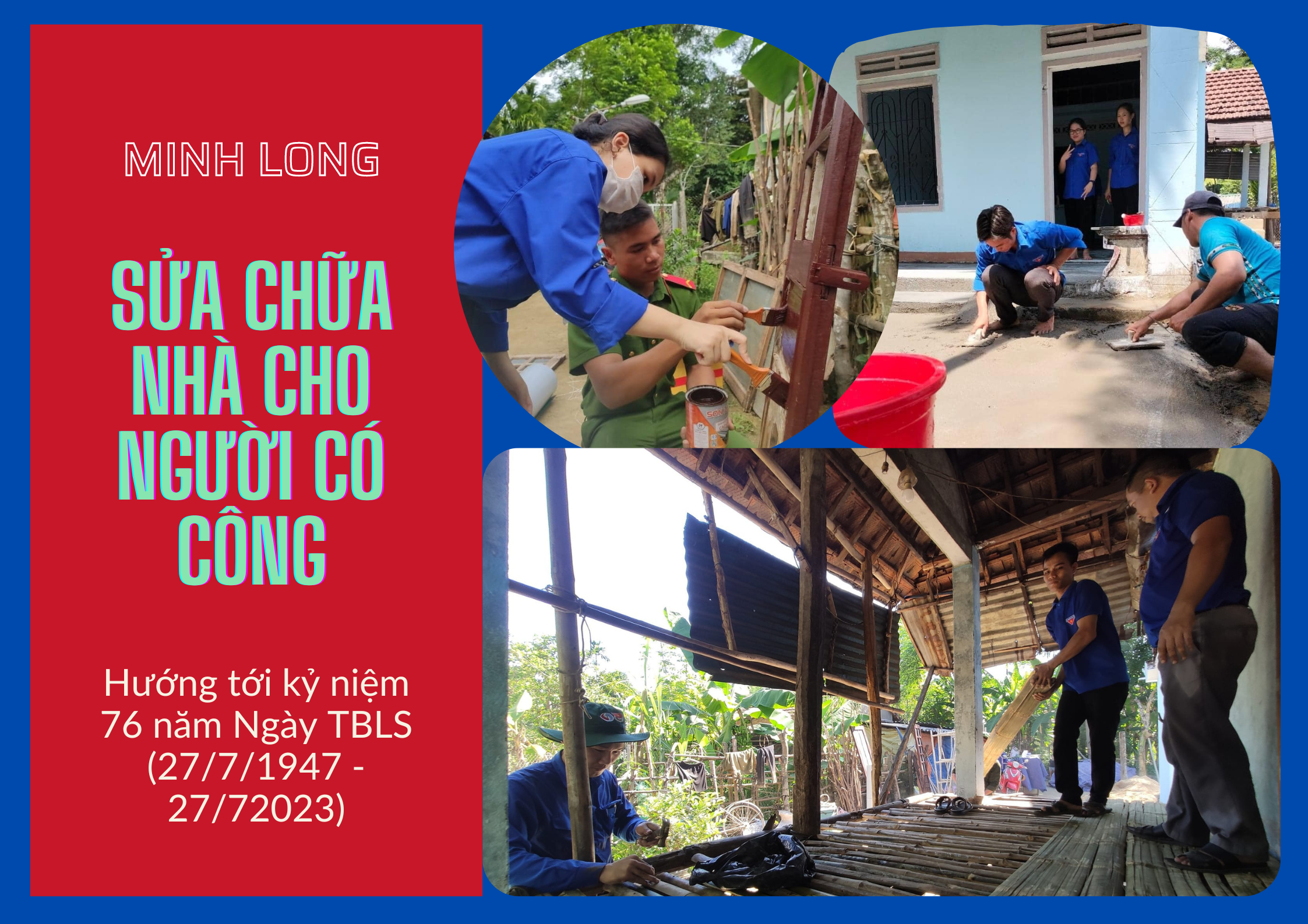 Ban Thường vụ Huyện đoàn Minh Long huy động hơn 30 lượt cán bộ, ĐVTN tham gia sửa chữa nhà cho gia đình bà Đinh Thị Thời, hộ người có công ở thôn Hà Xuyên, xã Long Hiệp.