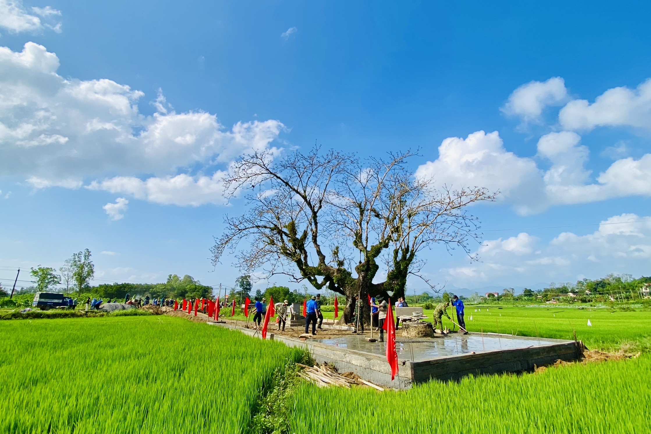 Di tích Cây Gạo thuộc xóm Trại, thôn Tân Phước, xã Bình Minh. Công trình thực hiện có tổng diện tích sân lát gạch 150m2, kè taluy 4 bên cao gần 1 mét và bê tông tuyến đường dẫn vào di tích dài 31 mét với tổng kinh phí 150 triệu đồng từ nguồn vận động xã hội và đóng góp ngày công của đoàn viên, thanh niên.