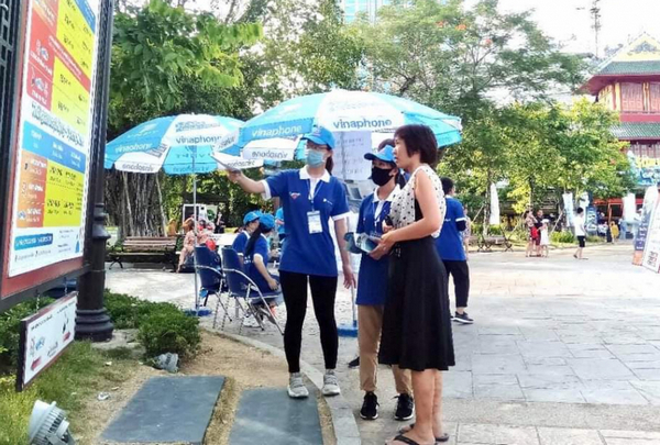 Tình nguyện viên CLB hỗ trợ thông tin du lịch của Đoàn khối các cơ quan tỉnh hỗ trợ cung cấp thông tin cho du khách tại các địa điểm du lịch trên địa bàn TP Hạ Long.