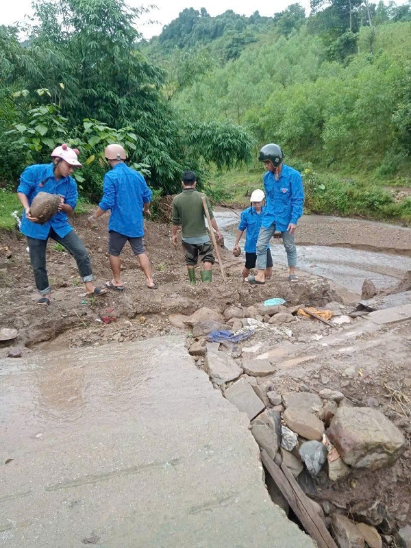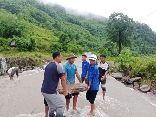 Tại các địa bàn bị ảnh hưởng nặng như xã Hải Lăng, xã La Lay, xã Tuyên Phú, xã Quảng Trạch, xã Lệ Thủy…lực lượng đoàn viên, thanh niên đã chủ động giúp người dân gia cố nhà cửa, dựng rào chắn tại khu vực ngập sâu, lắp đặt biển cảnh báo.
