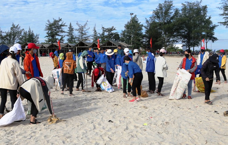 Đoàn viên, thanh niên, cán bộ, chiến sĩ và người dân trên địa bàn huyện Gio Linh đã ra quân vệ sinh môi trường dọc 02 km đường biển, thu gom, xử lý 02 tấn rác thải, làm sạch môi trường tại khu vực bãi biển Cửa Việt