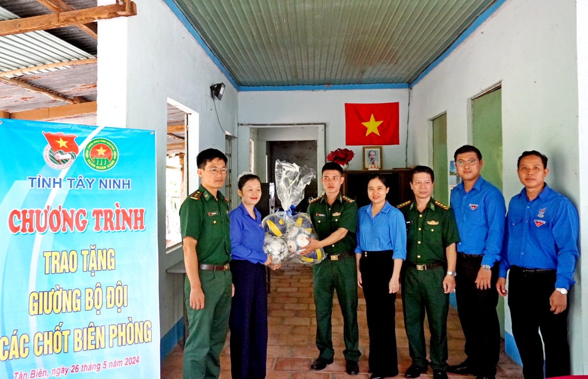 Thăm và tặng giường bộ đội tại Chốt Tân Thanh (Đồn Biên phòng Tân Phú)