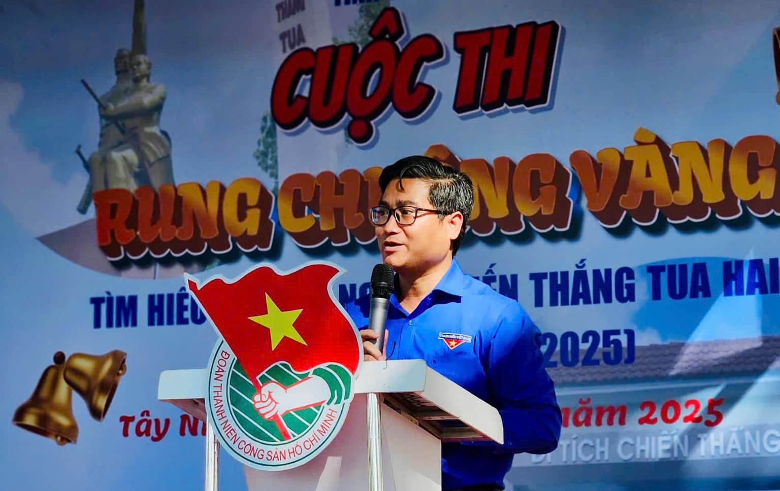 Đồng chí Nguyễn Thanh Tùng, Bí thư Tỉnh đoàn Tây Ninh phát biểu tại cuộc thi Rung chuông vàng