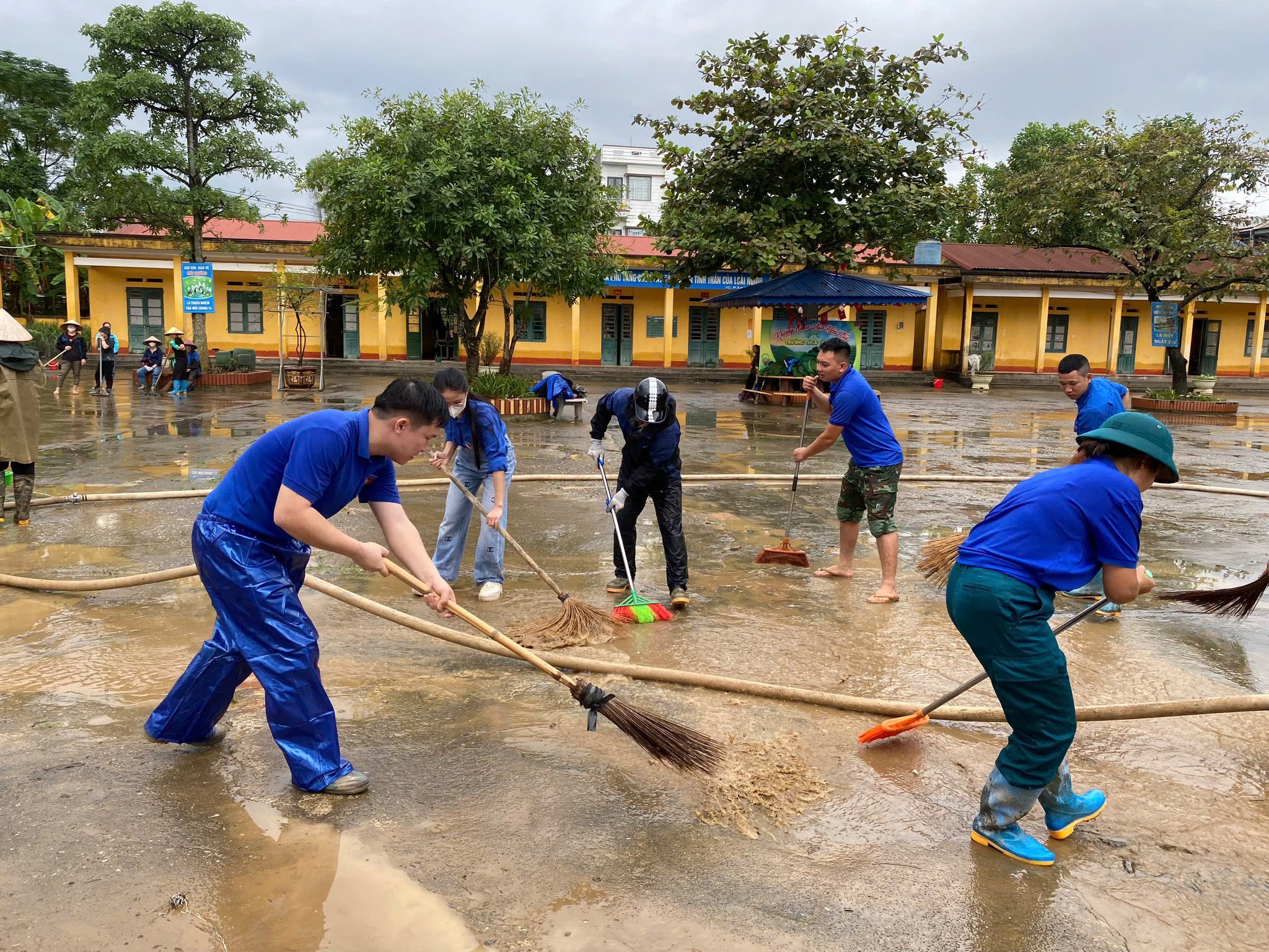 - Ngay sau khi mưa bão tạm lắng, đoàn viên, thanh niên đã tích cực ra quân dọn dẹp vệ sinh môi trường, các trụ sở cơ quan, trường học, trạm y tế và nhà dân bị ngập; giúp người dân di chuyển đồ đạc, sửa chữa nhà cửa và khôi phục sản xuất.