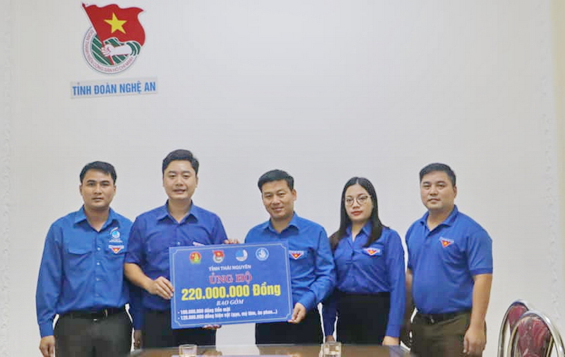 Trao tặng biển tượng trưng ủng hộ 220 triệu đồng cho Tỉnh đoàn Nghệ An