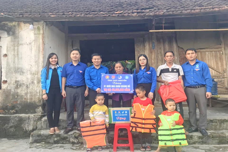 Đoàn cũng trao hỗ trợ 50 triệu đồng xây dựng 01 Ngôi nhà tình bạn cho em Ngô Anh Phong - lớp 10, THCS Nguyễn Thị Bích Châu và Ngô Anh Phương - học sinh Lớp 1 Trường TH&THCS Kỳ Văn, nhà ở Thôn Mỹ Liên, huyện Kỳ Anh, tỉnh Hà Tĩnh. Gia đình em có hoàn cảnh rất khó khăn: bố mất sớm, mẹ bị tai nạn gãy cột sống nằm liệt giường hiện đang sống nhờ gia đình ông bà ngoại, 2 anh em được ông bà nội đưa về nuôi, căn nhà các em đang ở xuống cấp trầm trọng, trong nhà không có vật dụng giá trị.