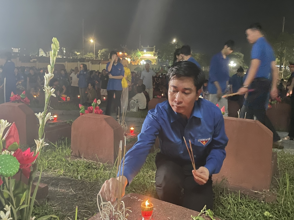 Đoàn viên thanh niên thắp nến tại các phần mộ liệt sĩ tại nghĩa trang liệt sĩ Dốc Lim