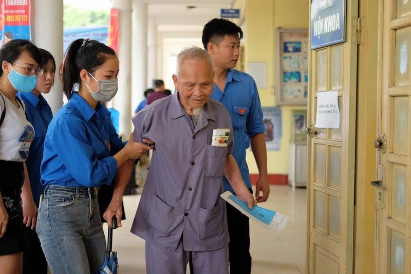 Đoàn viên thanh niên hỗ trợ người dân đến khám, chữa bệnh miễn phí