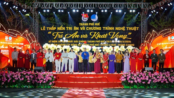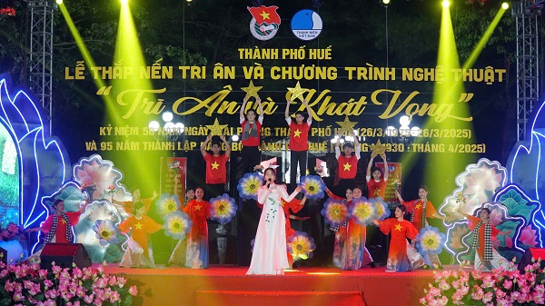 Sau lễ dâng hương, chương trình nghệ thuật “Tri ân và Khát vọng” được tổ chức như một món quà tri ân sâu sắc bằng ngôn ngữ nghệ thuật với những ca khúc đi cùng năm tháng như “Đất nước bên bờ sóng”, “Dòng sông phẳng lặng”, “Bài ca Trường Sơn”, “ Những anh hùng vô danh”,… do tập thể nghệ sĩ, diễn viên, đoàn viên, thanh niên thành phố Huế thể hiện.