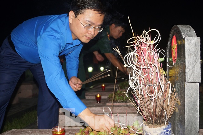Bí thư thường trực Trung ương Đoàn Nguyễn Anh Tuấn thắp hương trên phần mộ các anh hùng liệt sỹ. Ảnh: Nguyễn Minh