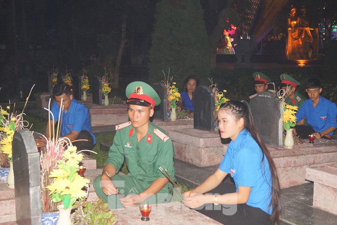 Hơn 2.000 ĐVTN Quân đội, Công an và tỉnh Điện Biên và đông đảo nhân dân địa phương đã cùng thắp nến tri ân tại các nghĩa trang liệt sỹ- Ảnh: Nguyễn Minh