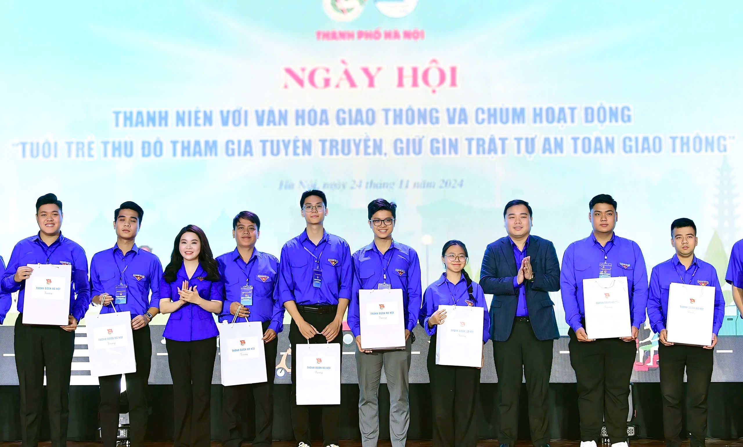 Phát biểu tại chương trình, đồng chí Chu Hồng Minh, Uỷ viên Ban Thường vụ Trung ương Đoàn, Thành uỷ viên, Bí thư Thành đoàn Hà Nội cho biết, năm 2024 là năm thứ hai Ban Thường vụ Thành đoàn, Hội Liên hiệp thanh niên Việt Nam thành phố Hà Nội triển khai các nội dung, hoạt động nhằm tuyên truyền, phổ biến, giáo dục pháp luật về trật tự, an toàn giao thông. Theo đó phấn đấu 100% cơ sở Đoàn đưa nội dung phổ biến pháp luật về giao thông vào các kỳ sinh hoạt định kỳ hàng tháng, quý; xác định nội dung Đoàn tham gia đảm bảo trật tự an toàn giao thông là tiêu chí thi đua hàng năm của các cấp bộ Đoàn.