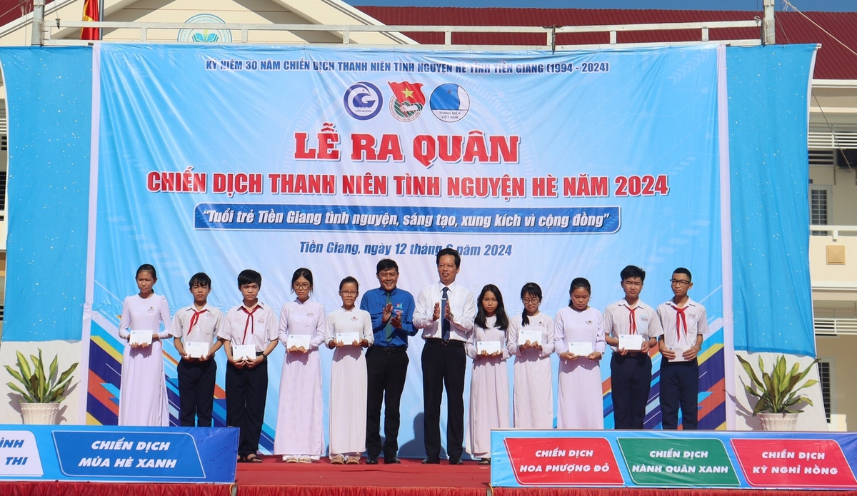 Dịp này, Ban Thường vụ Tỉnh đoàn Tiền Giang trao tặng 10 suất học bổng (1 triệu đồng/suất) cho học sinh có hoàn cảnh khó khăn của Trường THCS Võ Văn Dánh (xã Tăng Hòa, huyện Gò Công Đông); trao tặng 05 phần quà cho các em học sinh có hoàn cảnh khó khăn; tổng trị giá 15 triệu đồng.