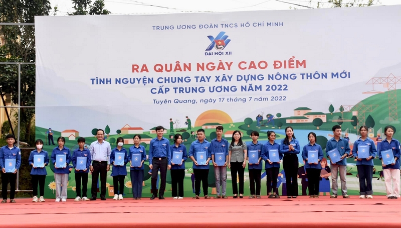 Tỉnh đoàn Tuyên Quang trao tặng 10 suất quà cho các em học sinh, sinh viên có hoàn cảnh khó khăn, trao tặng biển tượng trưng hỗ trợ sửa trường mầm non Hồng Thái trị giá 200 triệu đồng, trao tặng 01 nhà vệ sinh cho em và 01 tủ sách cho em trị giá 85 triệu đồng.