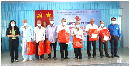Bên cạnh đó, Ban Thường vụ Tỉnh đoàn Trà Vinh tặng 10 phần quà (mỗi phần trị giá 800.000đ) cho các đồng chí lão thành cách mạng, cao niên tuổi Đảng tại địa phương và 10 phần quà (mỗi phần trị giá 500.000đ) cựu thanh niên xung phong trên địa bàn huyện Cầu Ngang với tổng kinh phí 14.000.000 đồng./.