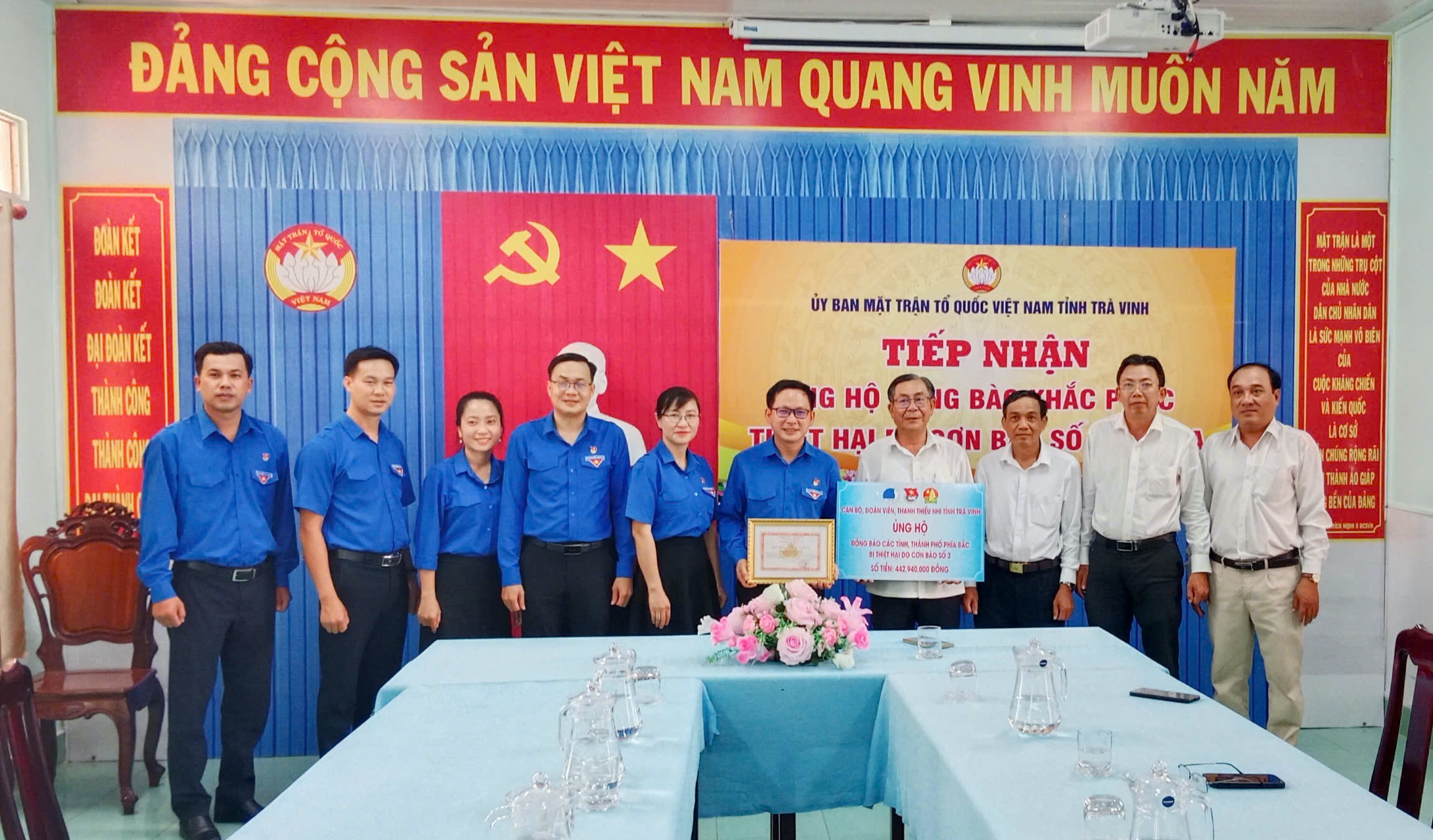 Thay mặt tuổi trẻ tỉnh nhà, đồng chí Trần Trí Cường, Bí Thư Tỉnh đoàn đã trao số tiền 442.940.000đ đến Ủy ban Mặt trận Tổ quốc Việt Nam tỉnh. Đây là số tiền do Tỉnh đoàn phát động trong cán bộ, đoàn viên, thanh thiếu nhi tỉnh nhà ủng hộ.