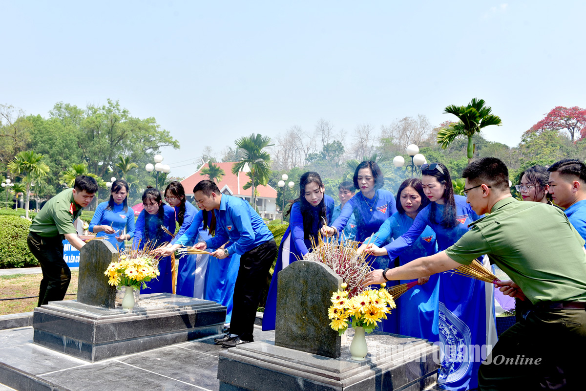 Đoàn đại biểu tuổi trẻ Tuyên Quang thắp hương phần mộ các liệt sĩ tại Nghĩa trang liệt sĩ A1 Điện Biên Phủ
