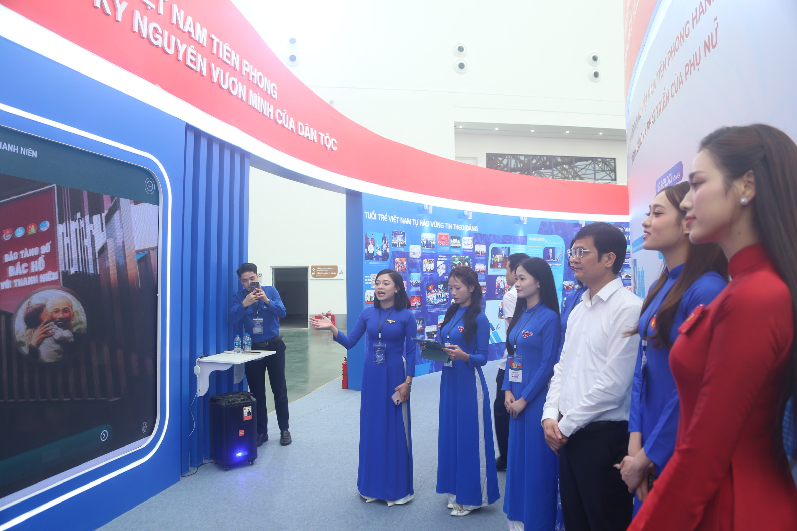 Không gian triển lãm của Đoàn TNCS Hồ Chí Minh được bố trí thành 4 khu vực, trong đó phần đầu cánh sen là màn hình LED giới thiệu một số sản phẩm số nổi bật của Đoàn TNCS Hồ Chí Minh, gồm: Bảo tàng số Tuổi trẻ Việt Nam, Bảo tàng Bác Hồ với thanh niên và công cụ AI của Đoàn.