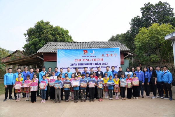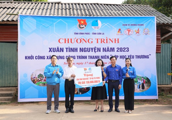 Tại trường Tiểu học xã Mường Chùm, huyện Mường La, Tỉnh đoàn - Hội LHTN Việt Nam tỉnh Vĩnh Phúc đã phối hợp với các đơn vị đồng hành trao tặng nhà trường công trình thanh niên “Lớp học yêu thương” trị giá 150 triệu đồng.