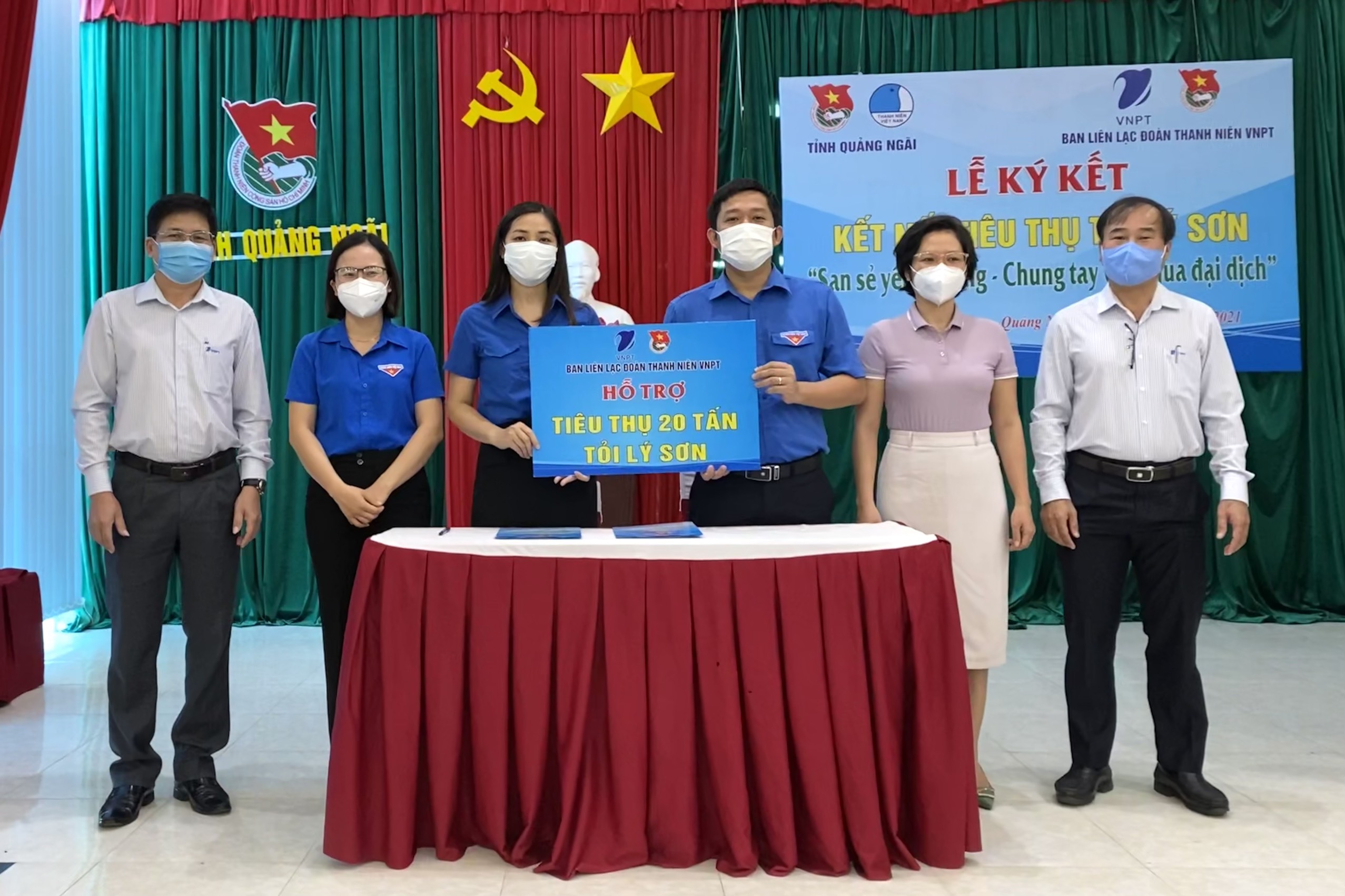 Đoàn Thanh niên VNPT Quảng Ngãi đại diện cho Ban liên lạc Đoàn Thanh niên Tập đoàn VNPT cùng Tỉnh đoàn Quảng Ngãi ký kết hỗ trợ tiêu thụ tỏi Lý Sơn