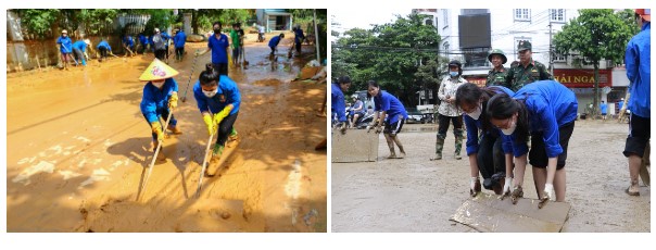 Trao đổi với Tiền Phong, anh Đồng Mạnh Linh, Phó Bí thư Tỉnh đoàn Yên Bái cho biết, hàng trăm đoàn viên đã được huy động từ huyện Văn Chấn, thị xã Nghĩa Lộ đã cùng đoàn viên thành phố chung tay dọn dẹp bùn đất, vệ sinh môi trường. Trước đó, trong thời điểm lũ lụt Ban Thường vụ Tỉnh đoàn Yên Bái cũng đã ra lời kêu gọi các cơ quan, tổ chức đơn vị hảo tâm trong và ngoài tỉnh giúp đỡ bà con nhân dân các nhu yếu phẩm cần thiết. Qua đó đã kêu gọi, vận động được hàng trăm tấn hàng hóa, nhu yếu phẩm cho người dân.