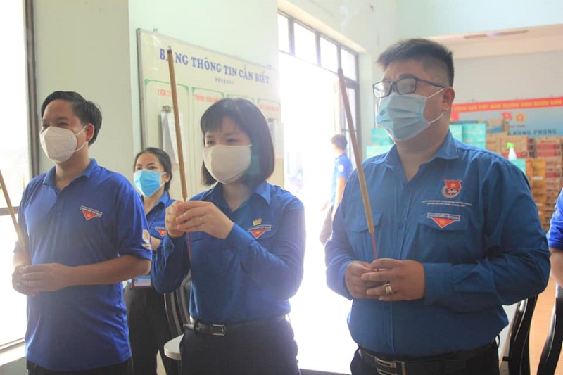 Đồng chí Nguyễn Thị Ngọc Xuân - Bí thư Tỉnh Đoàn và đồng chí Lê Quang Nhật - Đội trưởng Đội TNXP tỉnh dâng hương tưởng nhớ Anh hùng lực lượng vũ trang nhân dân Đoàn Thị Liên