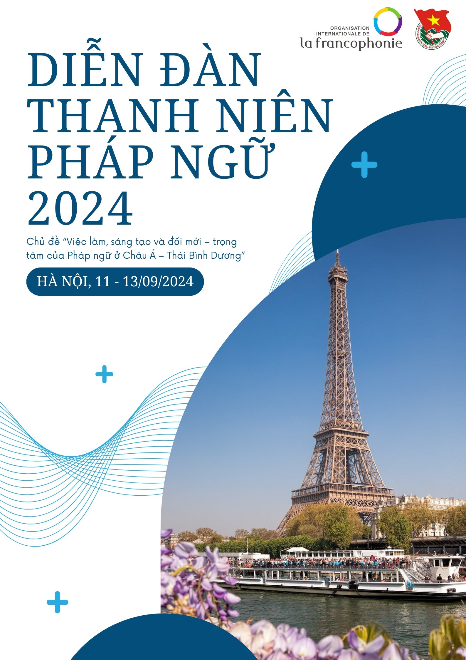 2. Nội dung hoạt động chính (i) Phiên toàn thể: Hội thảo “Cộng đồng Pháp ngữ tại châu Á – Thái Bình Dương: Những góc nhìn giao thoa”. (ii) Các hội thảo chuyên đề: Việc làm, cơ hội ra nước ngoài, khởi nghiệp kinh doanh, hội nhập nghề nghiệp của thanh niên Pháp ngữ ở châu Á – Thái Bình Dương; Môi trường và phát triển bền vững: Thành công trong lĩnh vực du lịch bền vững và có trách nhiệm ở châu Á – Thái Bình Dương; Kỹ thuật số và công nghệ thông tin – truyền thông: cơ hội nghề nghiệp và việc làm. (iii) Chương trình bồi dưỡng, đào tạo về khả năng lãnh đạo, trí tuệ cảm xúc và giao tiếp đa văn hoá trong công việc. (iv) Sản xuất các ấn phấm để giới thiệu tại Hội nghị thượng đỉnh Pháp ngữ ở Paris: ấn phẩm có thể là một đoạn video, phim ngắn về các hoạt động và kết quả của Diễn đàn hoặc một văn bản dạng “Tuyên ngôn”, “Lời kêu gọi” hoặc bất kỳ một ấn phẩm nào thể hiện sức sống của tiếng Pháp ở châu Á – Thái Bình Dương, sự sáng tạo của thanh niên và khả năng đổi mới và khởi nghiệp, đồng thời thu hút sự chú ý của thế giới đến khu vực châu Á – Thái Bình Dương đầy sức trẻ, năng động, kết nối và mang lại nhiều cơ hội. (v) Các hoạt động thăm quan, trải nghiệm văn hoá của Việt Nam.