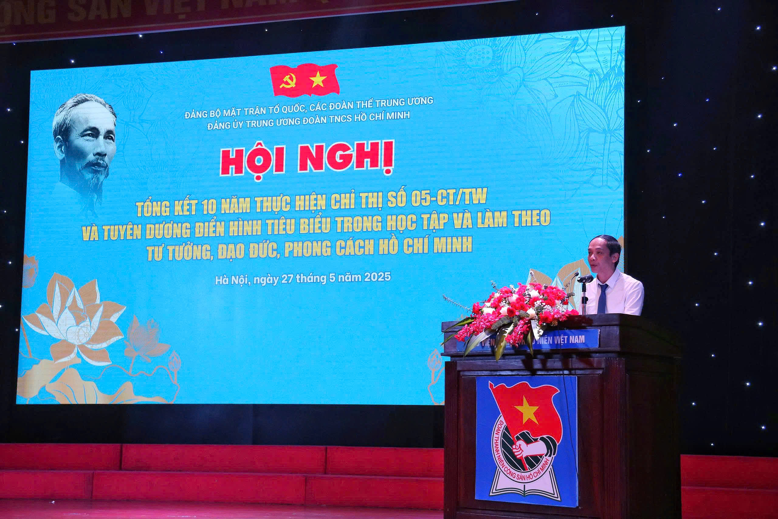 Báo cáo tóm tắt kết quả 10 năm thực hiện Chỉ thị 05 của Bộ chính trị tại Đảng bộ Trung ương Đoàn, đồng chí Nguyễn Thanh Tùng, Phó Bí thư, Chủ nhiệm UBKT Đảng uỷ Trung ương Đoàn nhấn mạnh: Trong thời gian qua, Đảng ủy Trung ương Đoàn đã ban hành 13 kế hoạch, hướng dẫn chỉ đạo học tập chuyên đề trọng tâm theo từng năm bám sát chỉ đạo của Ban Tuyên giáo Trung ương, Đảng ủy Khối, Đảng ủy Mặt trận Tổ quốc các đoàn thể Trung ương; tổ chức 10 Hội nghị chuyên đề tổ chức vào dịp kỷ niệm sinh nhật Bác 19/5. Tính đến năm 2024, đã tổ chức 8 hội nghị với 180 điển hình tiêu biểu được tuyên dương, 4.800 lượt cán bộ, đảng viên trực tiếp nghe phổ biến, quán triệt chuyên đề.