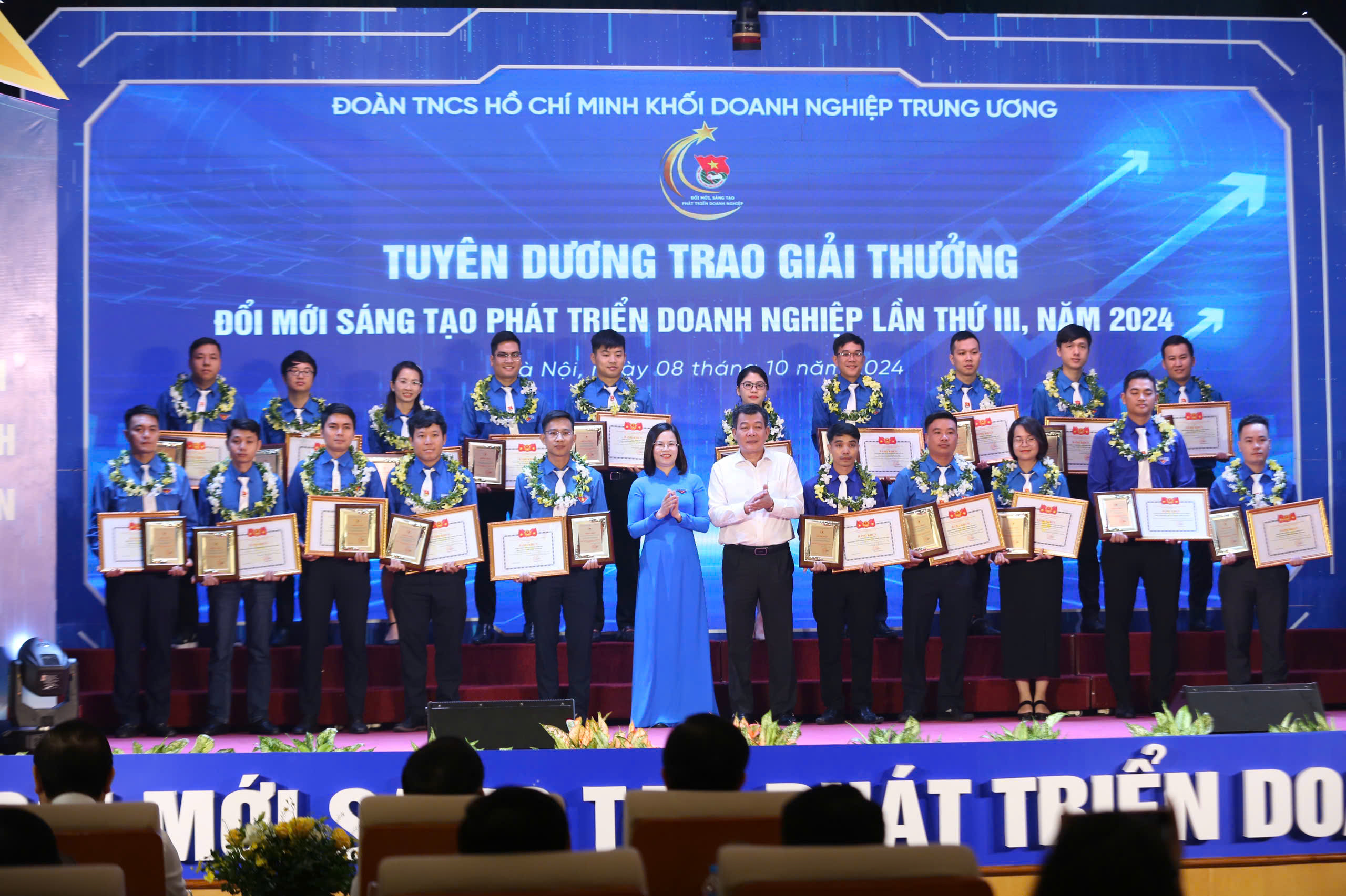 Đồng chí Nguyễn Đức Phong, Phó Bí thư thường trực Đảng ủy Khối Doanh nghiệp Trung ương  và đồng chí Hoàng Thị Minh Thu, Bí thư Đoàn Khối Doanh nghiệp Trung ương tuyên dương 30 công trình, sản phẩm tiêu biểu Đoàn Khối Doanh nghiệp Trung ương giai đoạn 2022-2024.