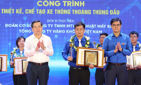 9. Công trình "Thiết kế, chế tạo xe thông thoáng thùng dầu" (nhóm tác giả Chi đoàn Trung tâm Phục vụ Bảo Dưỡng, Công ty Trách nhiệm hữu hạn Một thành viên Kỹ thuật Máy bay, Tổng công ty Hàng không Việt Nam).