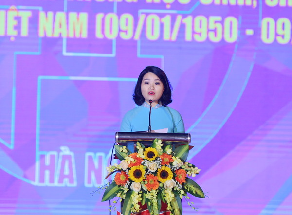 Ủy viên Trung ương Đảng, Phó Bí thư thường trực Thành ủy Hà Nội Ngô Thị Thanh Hằng chúc mừng Hội Sinh viên TP Hà Nội nhân kỷ niệm 70 năm ngày truyền thống học sinh, sinh viên và Hội Sinh viên Việt Nam