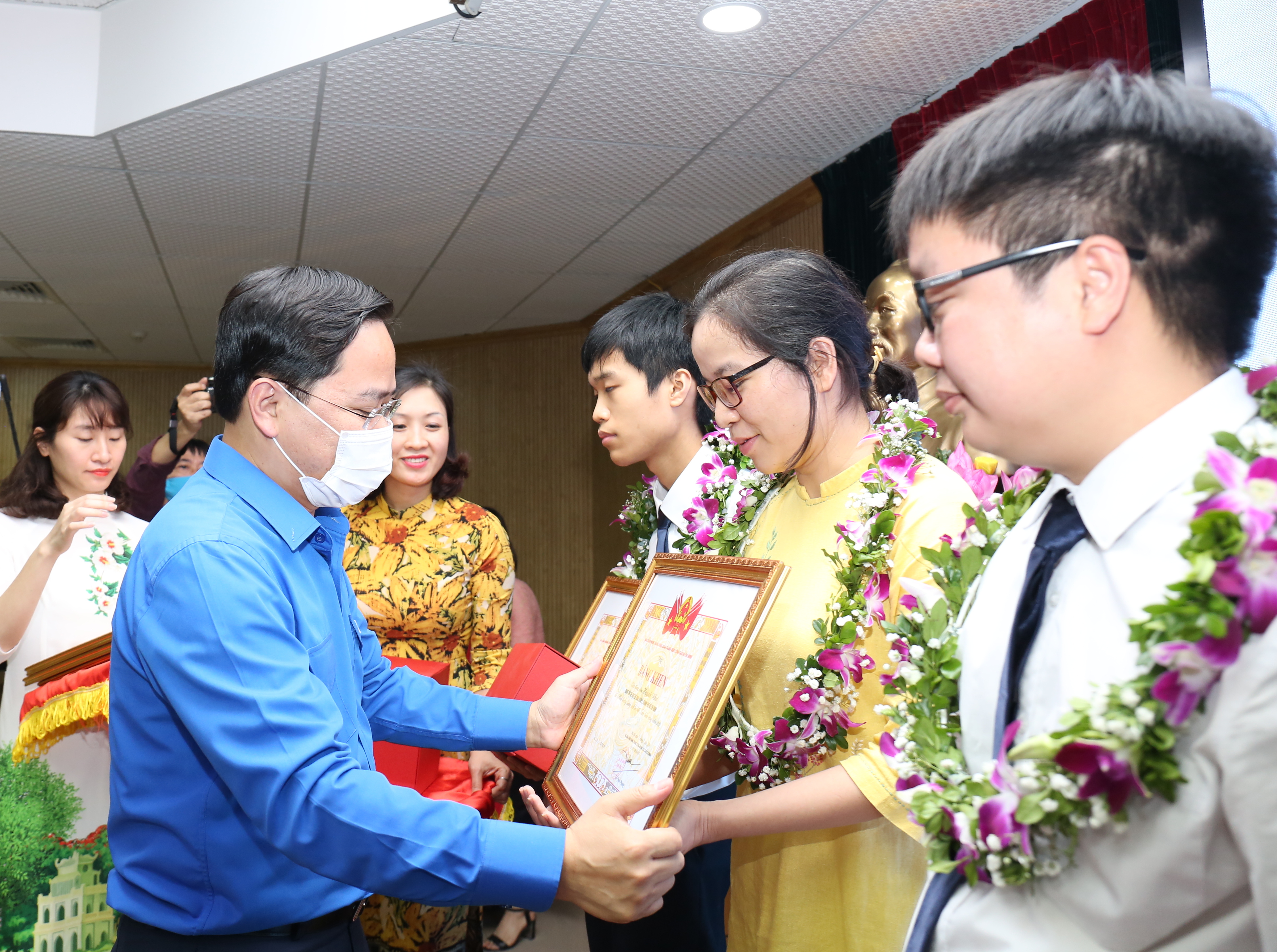 Đồng chí Nguyễn Anh Tuấn, Bí Thư Thường trực T.Ư Đoàn trao Bằng khen của Trung ương Đoàn và kỷ niệm chương của Giải thưởng cho các Gương mặt trẻ Việt Nam triển vọng năm 2019.