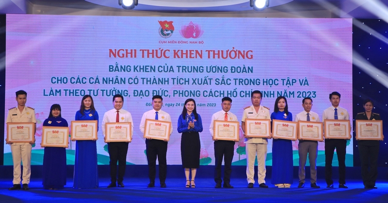 Tại lễ tuyên dương, đồng chí Nguyễn Phạm Duy Trang - Bí thư T.Ư Đoàn, Chủ tịch Hội đồng Đội T.Ư đã trao tặng bằng khen T.Ư Đoàn cho 26 cá nhân có thành tích xuất sắc trong học tập, làm theo tư tưởng, đạo đức, phong cách Hồ Chí Minh năm 2023; trao bảng tượng trưng tặng công trình thanh niên tuyến đường "Sáng - xanh - sạch - đẹp - an toàn" trị giá 170 triệu đồng cho xã Hàng Gòn (TP.Long Khánh).