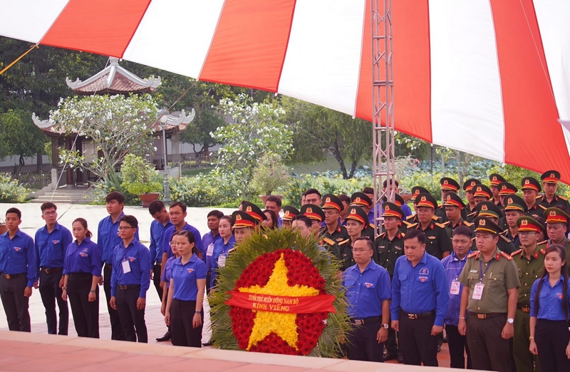 Trước đó, vào chiều ngày 24/6, Đoàn đại biểu tham gia Liên hoan Thanh niên tiên tiến làm theo lời Bác cụm miền Đông Nam Bộ năm 2023 đã tổ chức dâng hương, dâng hoa bày tỏ lòng tri ân, tưởng nhớ đến các anh hùng liệt sỹ, những người con của đất Việt đã anh dũng chiến đấu, hy sinh để giành lại độc lập dân tộc, bảo vệ chủ quyền thiêng liêng của Tổ quốc tại Đền thờ Liệt sỹ thành phố Long Khánh, tỉnh Đồng Nai.