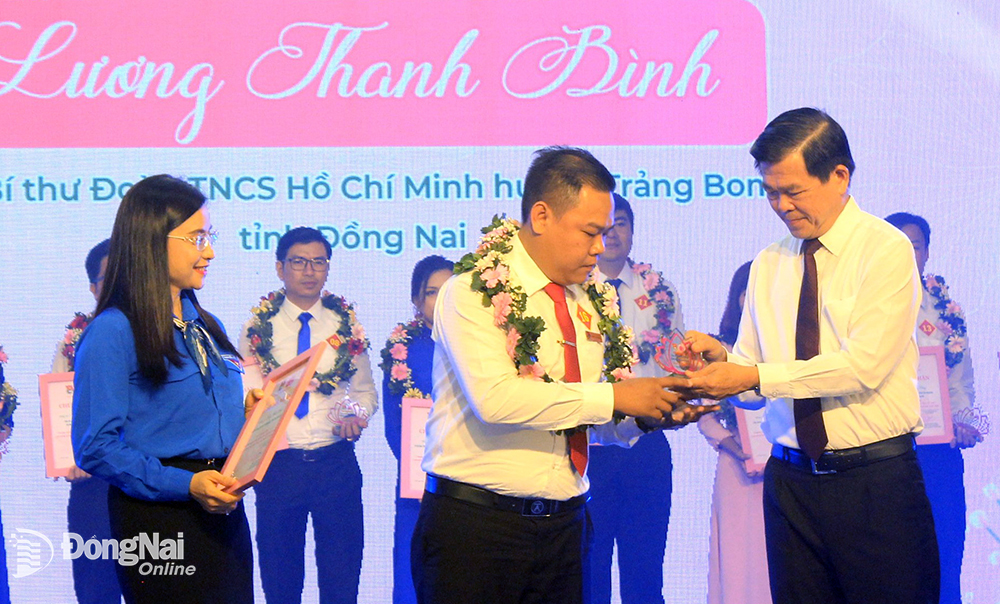 Đồng chí Nguyễn Hồng Lĩnh, Ủy viên T.Ư Đảng, Bí thư Tỉnh ủy Đồng Nai và đồng chí Nguyễn Phạm Duy Trang, Bí thư T.Ư Đoàn, Chủ tịch Hội đồng Đội T.Ư trao tuyên dương các thanh niên tiên tiến làm theo lời Bác cụm miền Đông Nam bộ. Ảnh: Báo Thanh niên. Ảnh: Báo Đồng Nai