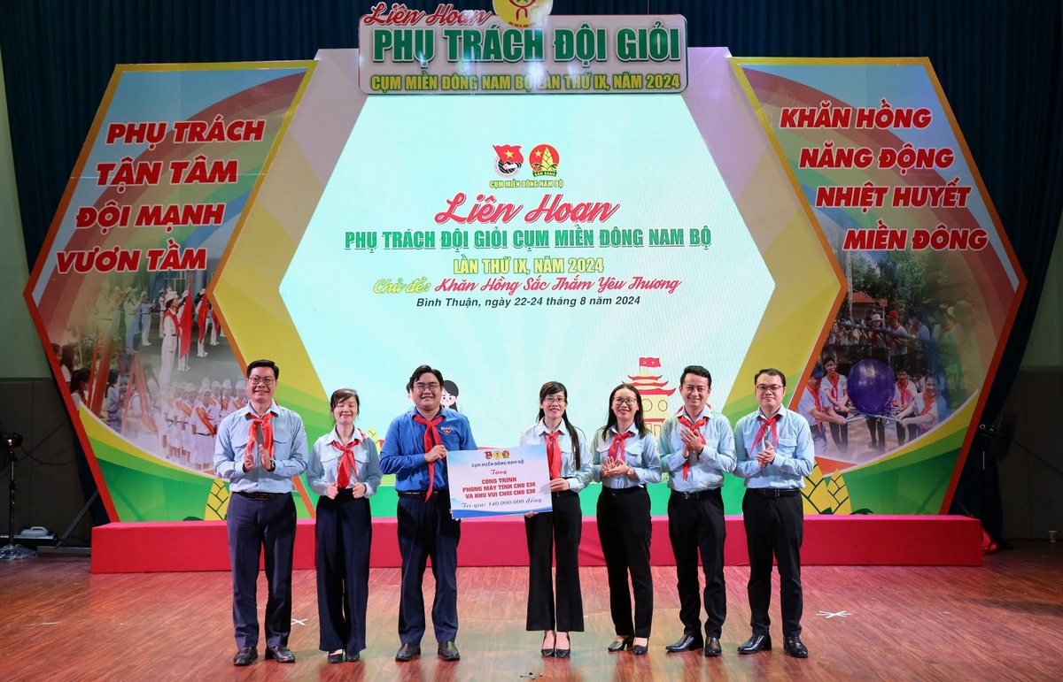 Dịp này, Liên hoan cũng trao tặng một ngôi nhà “Khăn quàng đỏ” và một phòng Máy tính cho em tại huyện Hàm Thuận Nam với kinh phí do các Tỉnh, Thành đoàn thuộc Cụm Miền Đông Nam Bộ đóng góp.
