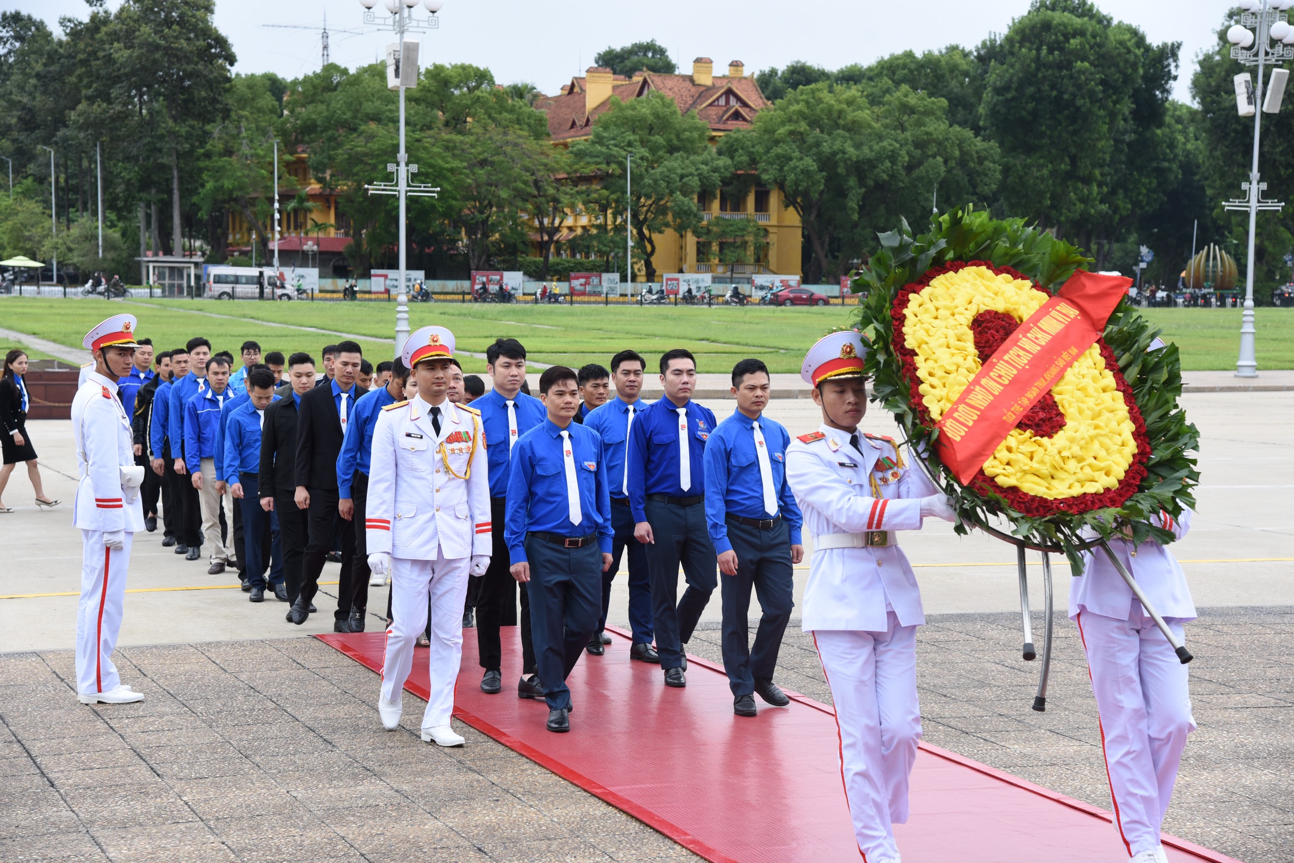 Trước đó, Đoàn đại biểu Thanh niên tiên tiến làm theo lời Bác, thợ mỏ trẻ tiêu biểu, mô hình thanh niên tham gia quản lý xuất sắc đã báo công dâng Bác tại quảng trường Ba Đình.