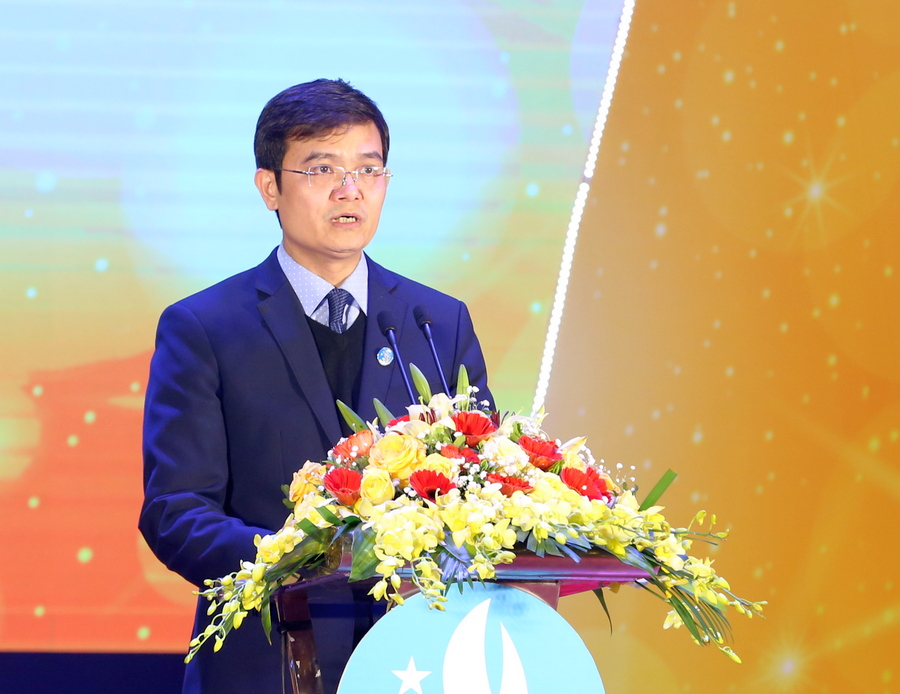 Đồng chí Bùi Quang Huy, Bí thư Thường trực TƯ Đoàn phát biểu tại lễ kỷ niệm