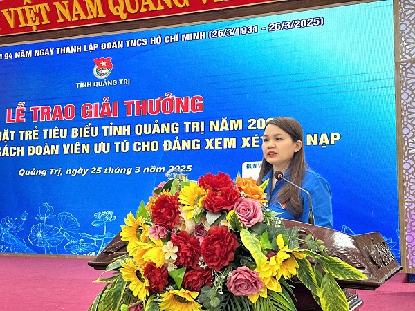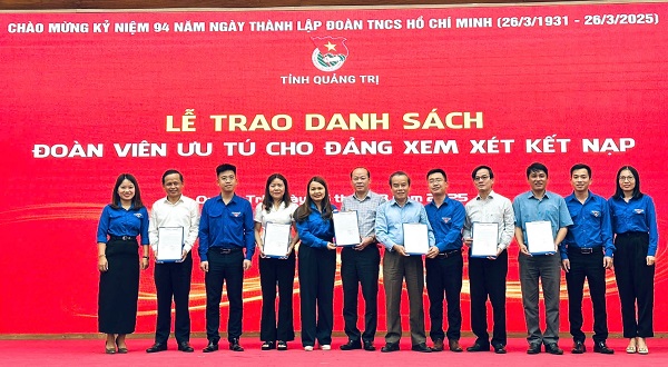 ĐTN: Hòa chung trong không khí thi đua sôi nổi của tuổi trẻ toàn tỉnh hưởng ứng Tháng Thanh niên 2025, chào mừng kỷ niệm 94 năm Ngày thành lập Đoàn TNCS Hồ Chí Minh, ngày 25/3, Ban Thường vụ Tỉnh đoàn tổ chức Lễ trao Giải thưởng “Gương mặt trẻ tiêu biểu tỉnh Quảng Trị” năm 2024 và trao danh sách đoàn viên ưu tú cho Đảng xem xét, kết nạp.