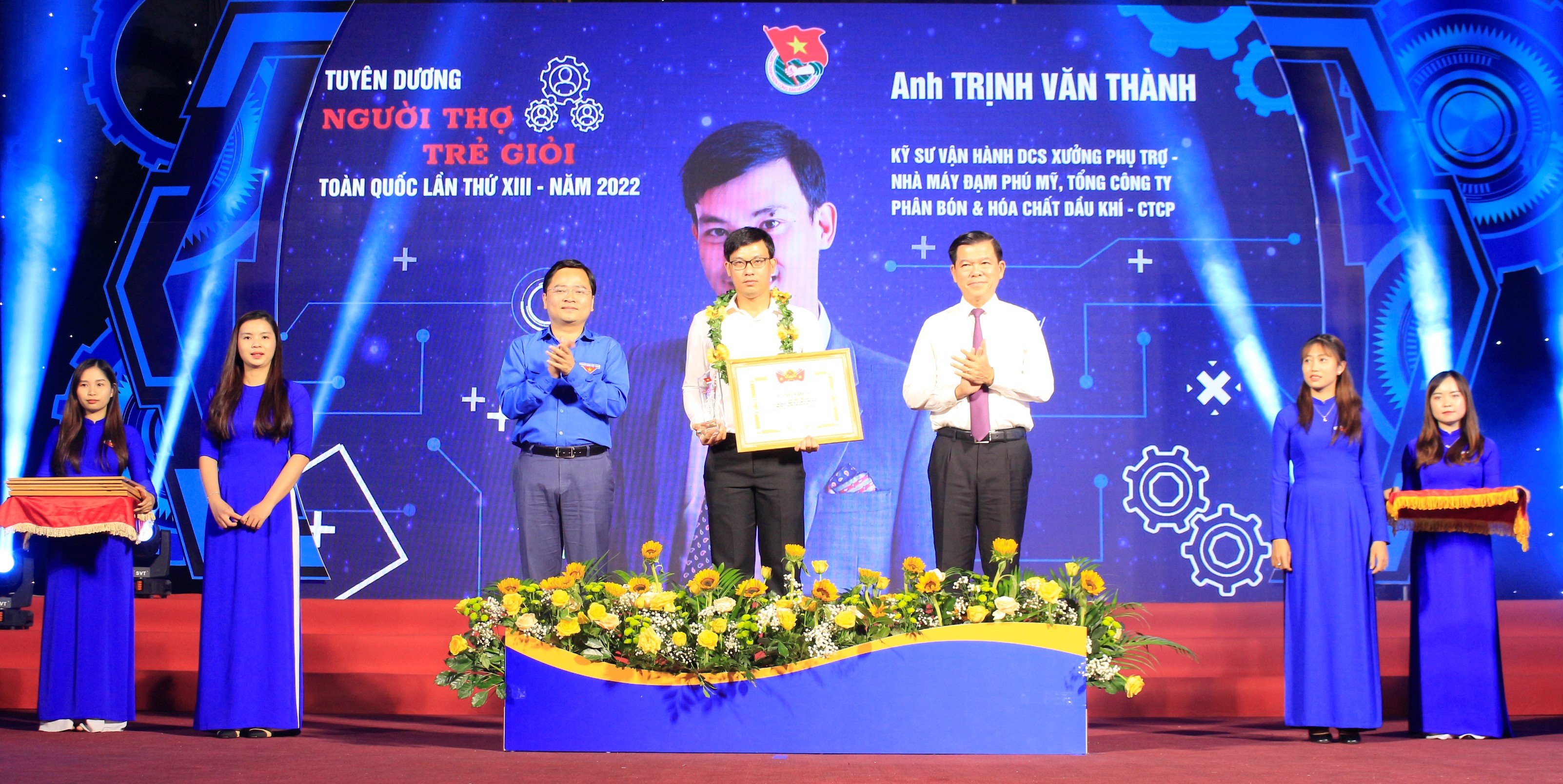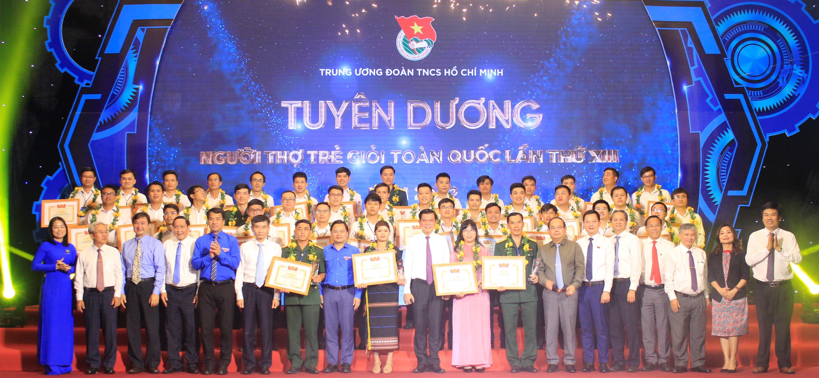 Đồng chí Nguyễn Hồng Lĩnh, Ủy viên TƯ Đảng, Bí thư Tỉnh ủy Đồng Nai; đồng chí Nguyễn Anh Tuấn, Ủy viên TƯ Đảng, Bí thư thứ nhất TƯ Đoàn trao tặng bằng khen và biểu trưng cho những Người thợ trẻ giỏi toàn quốc lần 13 năm 2022